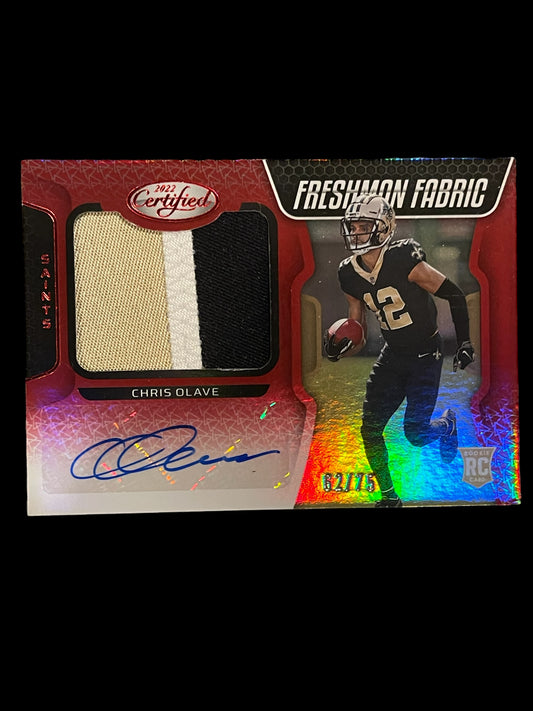 Chris olave panini certified autographed game used rookie card jersey freshman fabrics numbered 62/75